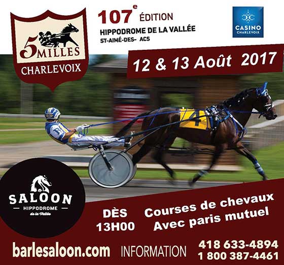 13:00 : Début du programme de courses avec paris mutuels et présentation de la 107e course du 5 milles.